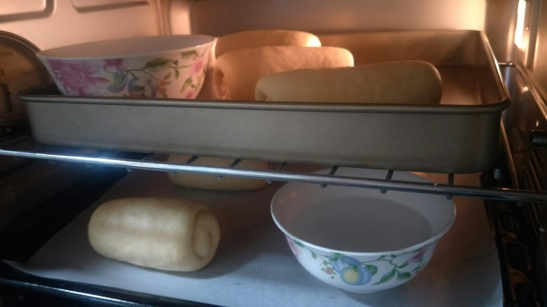 29. 放在烤盘上要有充分的空间进行二发。可以在旁边放两盆热水发的更加好。