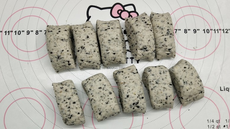 4. 把松弛好的面团搓成长条,用刮板分成小段