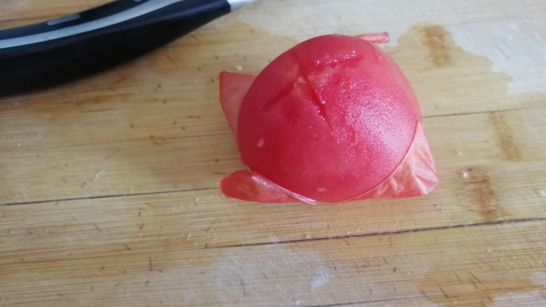 - 2.番茄切十字刀用开水浇一下,然后剥皮