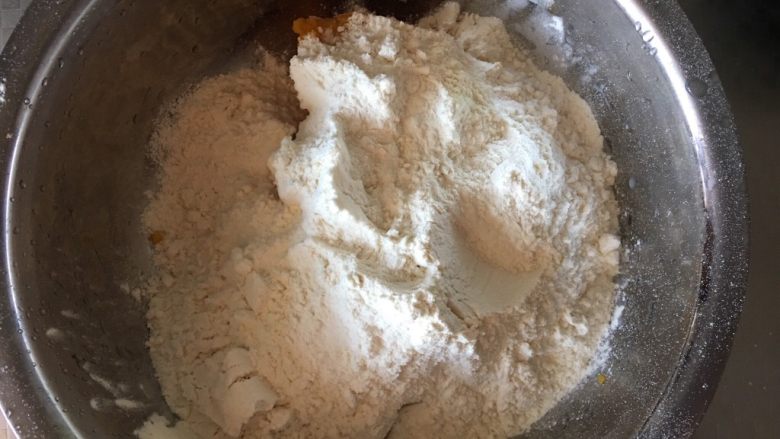 1. 将南瓜泥面团的所有材料混合