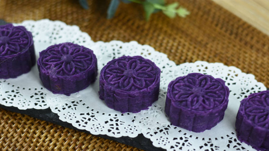 7. 放入紫薯团,压成饼即可。