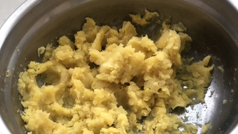 1. 红薯去皮切片,蒸熟后压成泥。