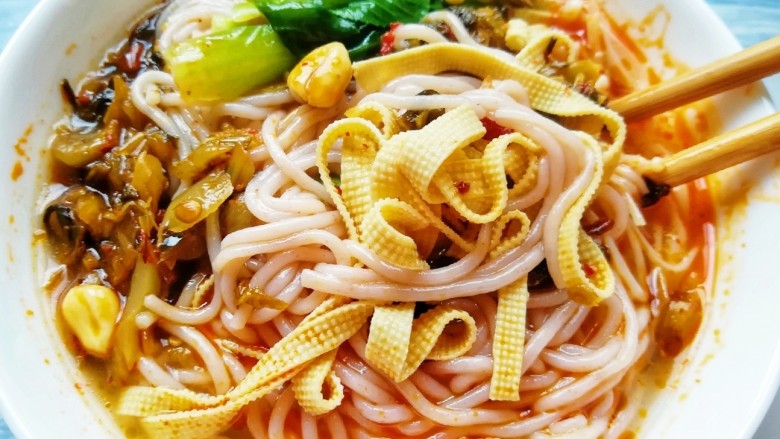 - 米线里面的配菜根据自己的喜好调整,不喜欢吃辣辣椒油可以不放。