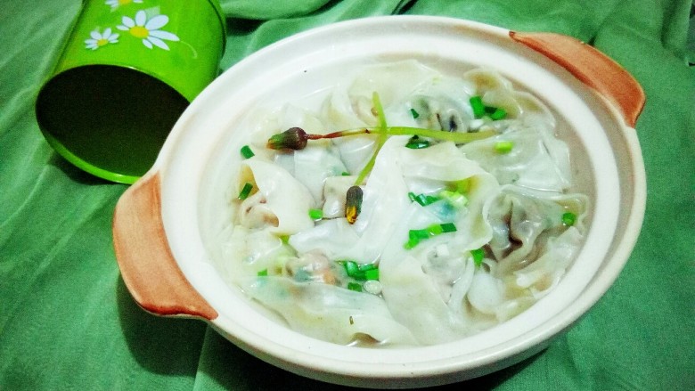 - 馄饨煮好,加清汤,撒葱花,美味又好看。