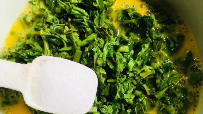 15. 倒入香椿鸡蛋液