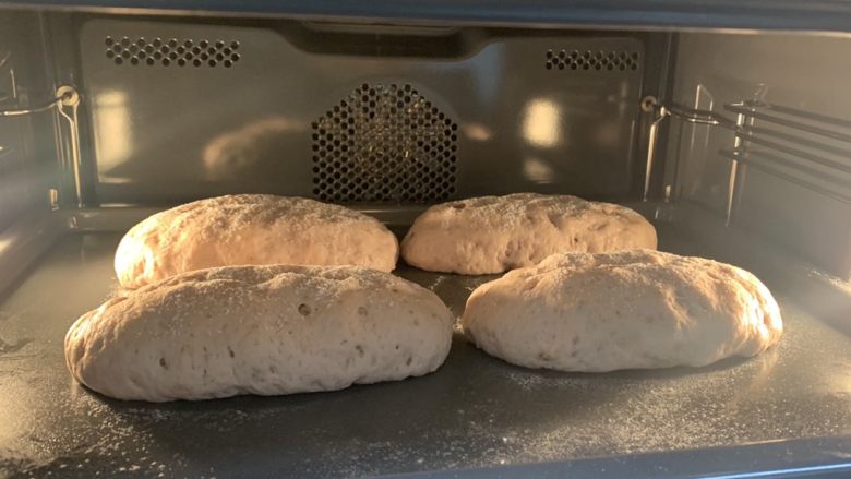 8. 喷洒极细雾水,盖上一只烤盘,放入烤箱,设置保温30度继续发酵约40分钟。