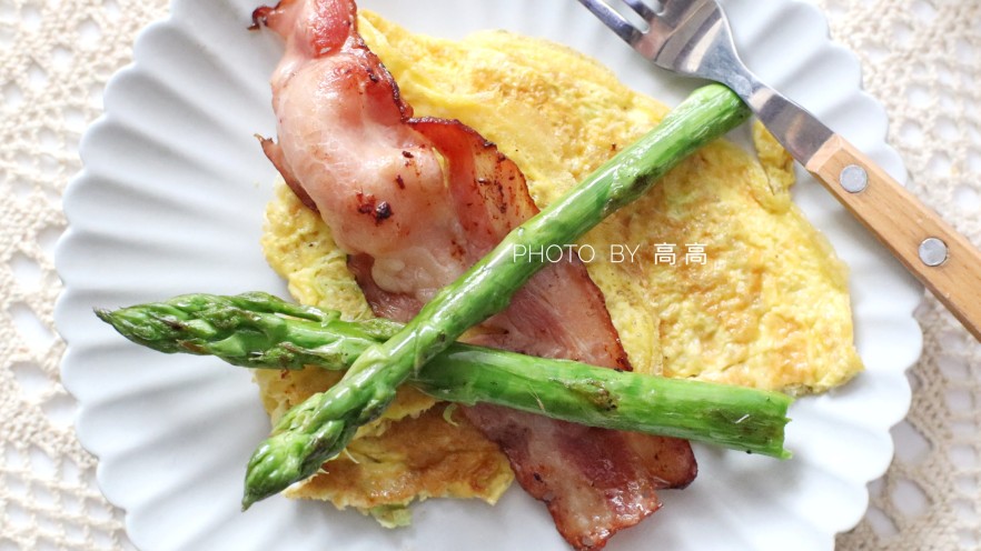 藜麦和鸡蛋完美结合,淡淡的葱香味,搭配高膳食纤维芦笋,培根。一份营养早餐就完成啦~