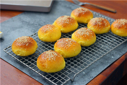 - 1、 面粉的吸水性不同,加牛奶的时候可以先加50克,剩下的15克视面团再加。 2、 二发好的面包,刷一层水是为了让芝麻粘的更牢一点。 3、 烤好的小餐包,可以刷蜂蜜水,也可以刷一层玉米油,这样看着更有食欲。 4、 烤箱的温度要根据自己烤箱的实际情况来调节。但是加盖锡纸一定要控制时间。