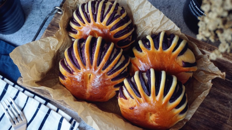 一个面包好不好吃,第一眼很重要,也就是面包的外型也能给味道加几分。所以如果你学会了基本的制作面包过程,不妨试一下这个造型,做出来非常好看,当然加了紫薯馅的面包也很好吃的哟