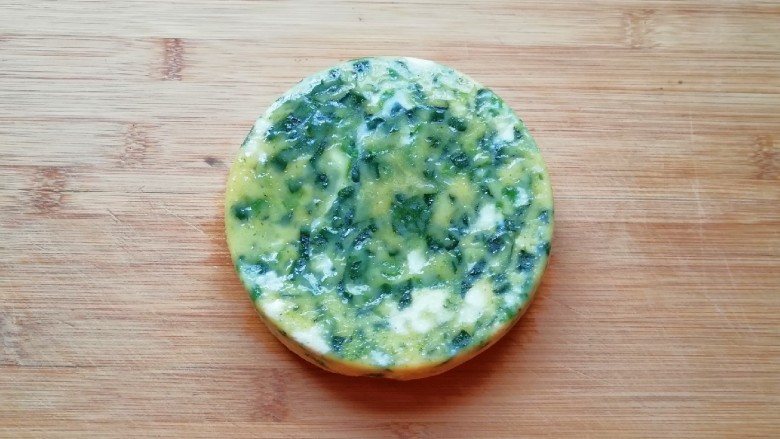 11. 蒸好的菠菜鸡蛋糕倒扣在案板上。