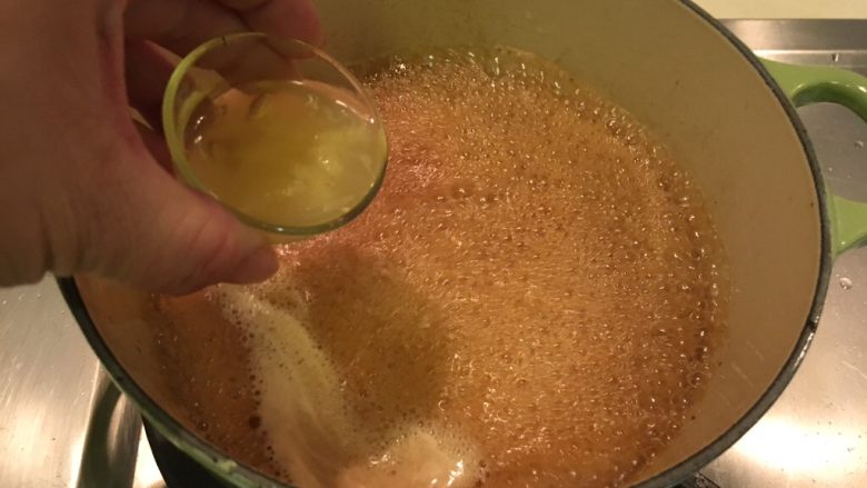 11. 生抽、米酒、蜂蜜、水,加入烧开