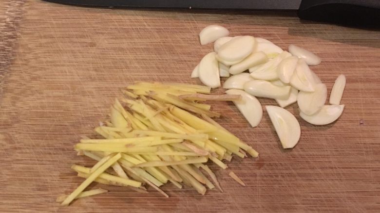 5. 姜切丝、蒜切片