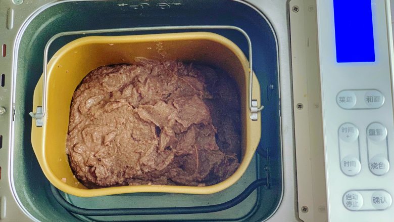 5. 将打好的红豆泥倒入面包机里,启动“果酱”功能,开始炒制豆沙。