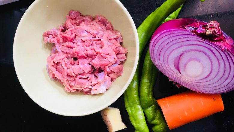 2. 切好的牛肉丝放在清水里浸泡一会儿,泡去血水后再洗净捞出