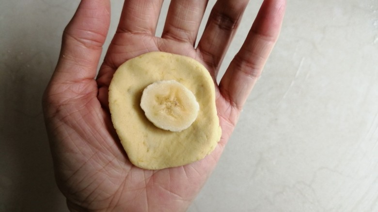 香蕉红薯糯米饼,成品金黄,咬一口软软糯糯的,香蕉味清新馥郁。糯米皮是用红薯和糯米粉和制而成,再裹上香蕉片。香蕉和红薯都有润肠通便的作用,而糯米粉制品不易于消化,把红薯揉入糯米粉中,就能和暖肠胃,利于消化。