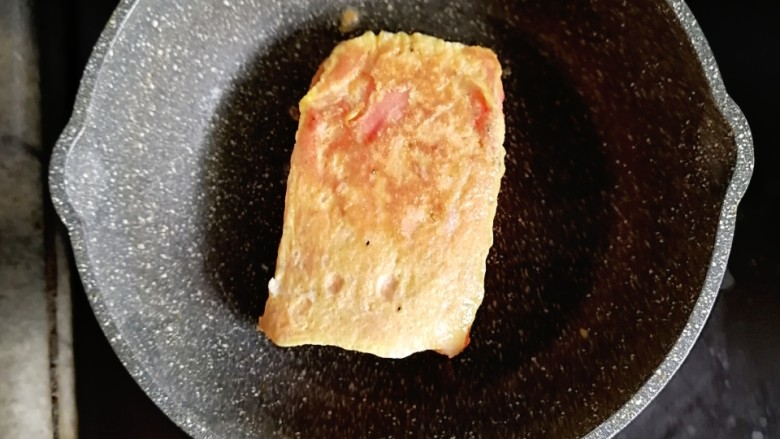 8. 不粘锅刷一层油,放入吐司,小火慢煎
