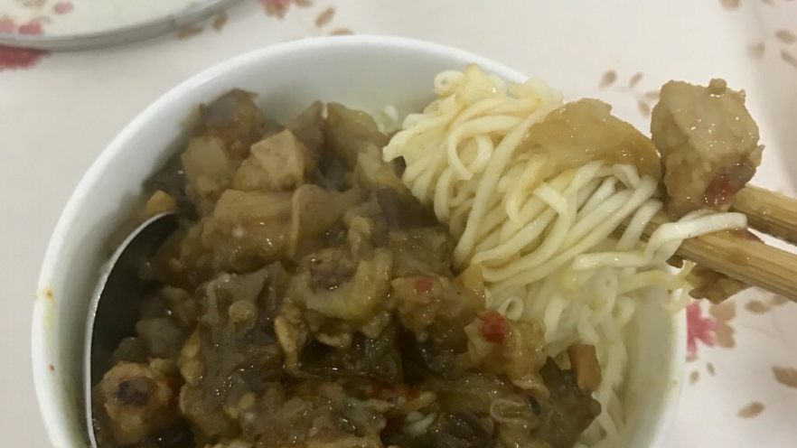 红烧茄子肉末拌面