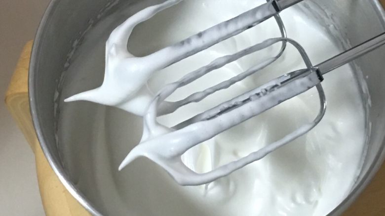 4. 再搅打50圈,打蛋头上出现直立的小尖峰。