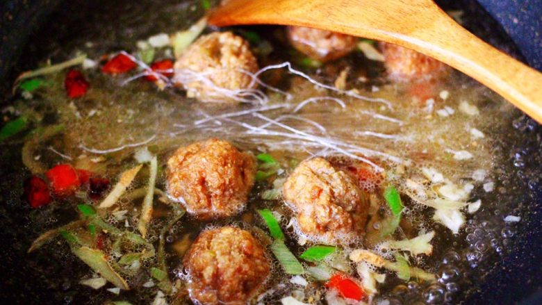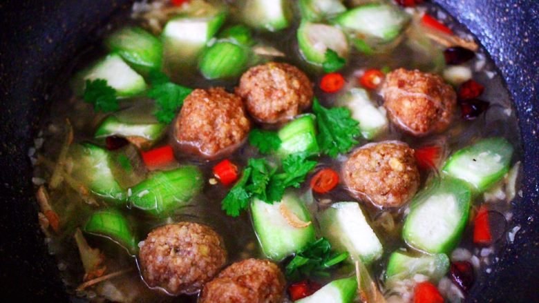 15. 鲜香味浓郁的丝瓜肉丸粉丝煲就出锅咯,老公一口气吃了两碗。
