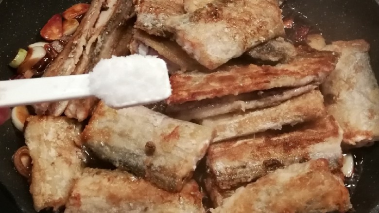 18. 烧至汤汁浓稠 期间晃动炒锅 不让鱼块与锅底粘连