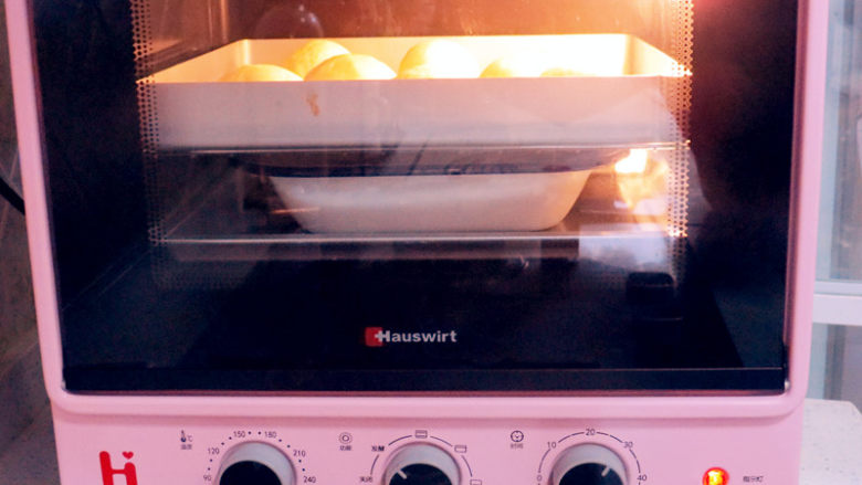 23. 继续放在烤箱里发酵,放一盘热水增加湿度