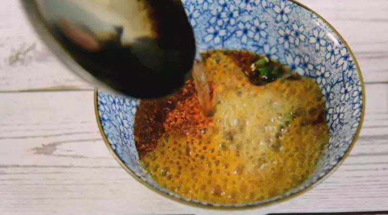 4. 再加入蒜葱末、白芝麻、辣椒面