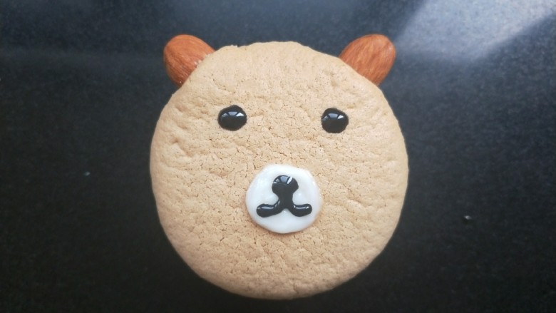 11. 用巧克力酱(我用的黑芝麻酱)画出眼睛,鼻子。