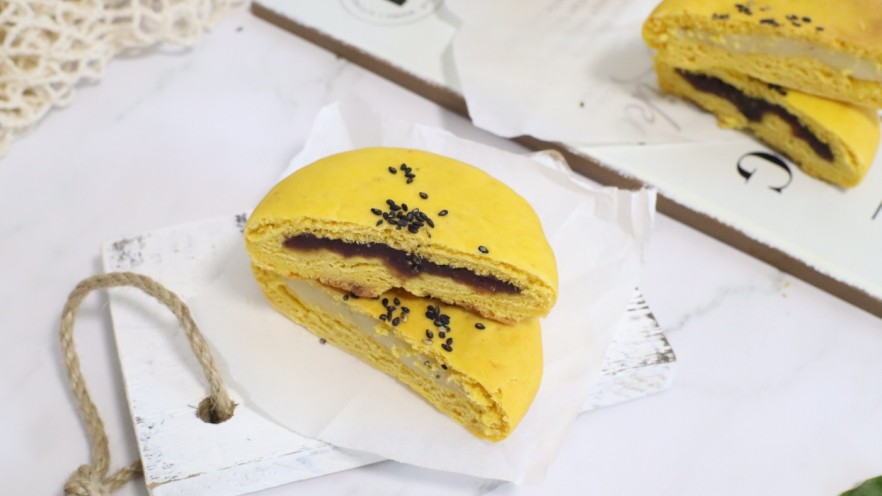 8. 压成饼,刷上蛋液,撒上黑芝麻