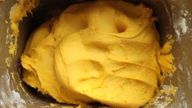 7. 南瓜面团压饼,圈外压薄,便于抱起来不会一面太厚
