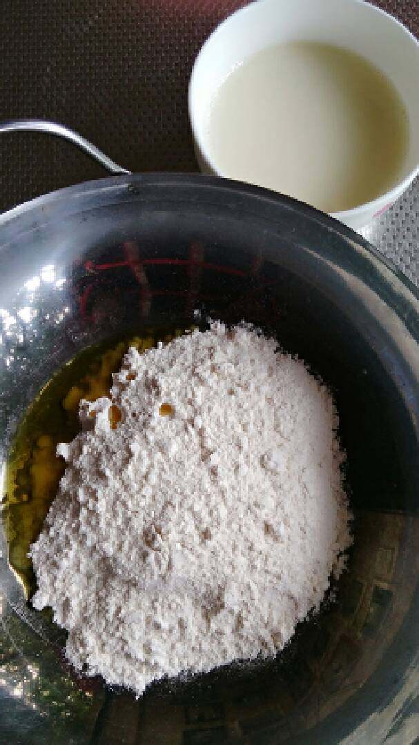 7. 醒好的面擀成圆形放进刷了鸡油的锅里,两面小火烙成金黄色。用锅铲跟面包夹往饼中间推就成一丝丝了