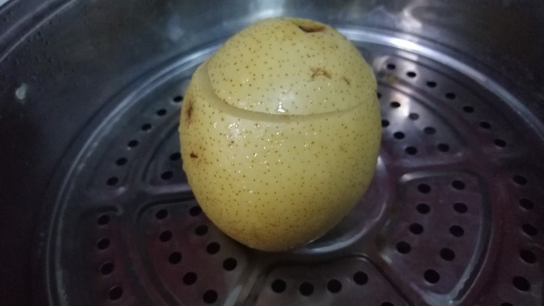 6. 然后将所有食材都放入梨子中,加入少许清水