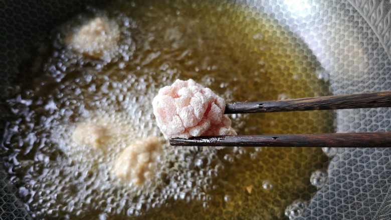 12. 小火慢慢将荔枝肉炸透。