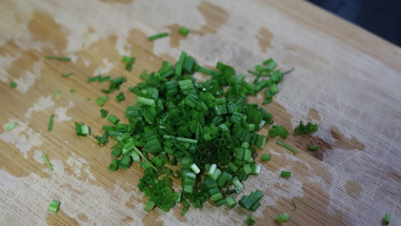 2. 先把小香葱洗干净,甩掉水分,切碎,注意别用大葱,大葱的味道太刺鼻。
