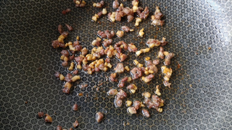 14. 翻炒至把肥肉完全逼出油,瘦肉略干。