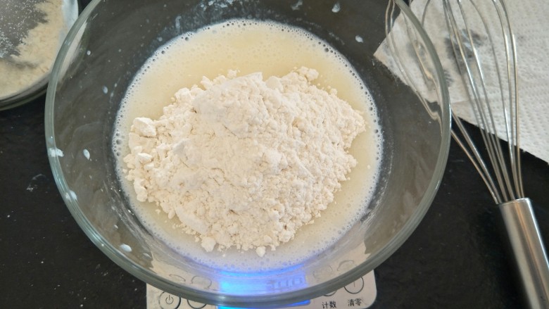 8. 用蛋抽划十字搅拌。这样面粉起劲的概率很低。