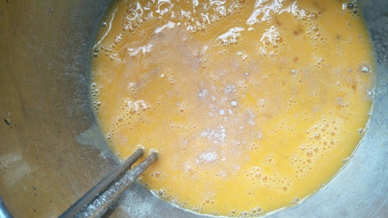 11. 将煮好的土豆青豆放入蛋液中搅拌均匀。