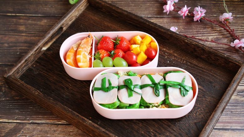 18. 便当盒除了包菜饭以外,还需要准备一些时令水果。
