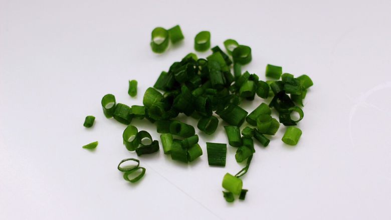 2. 小香葱洗净后,不要葱白,用刀把葱叶切成末。