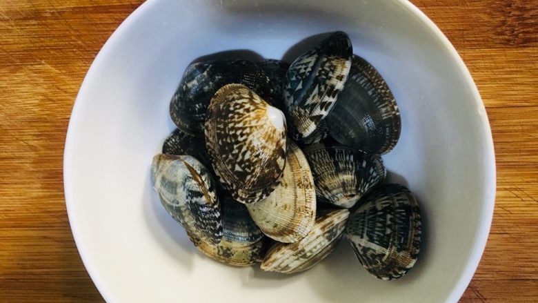 1. 买回来的花蛤用淡盐水浸泡4小时左右