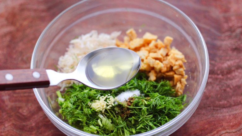 16. 皮薄馅足的茴香油渣虾皮包出锅咯。