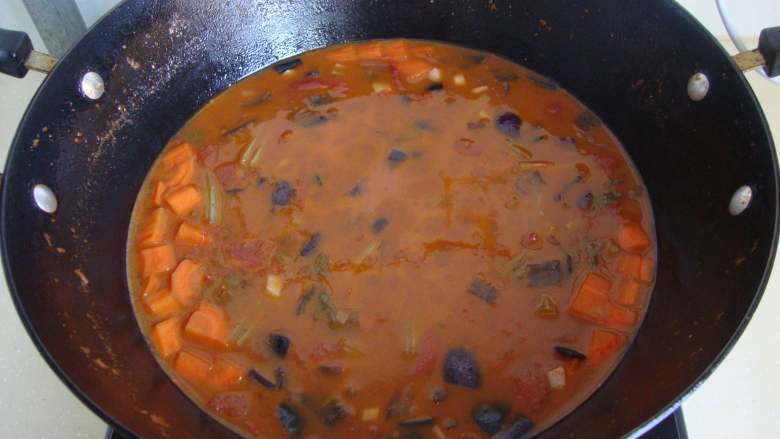 6. 加煮好的海鲜汤煮至20分钟
