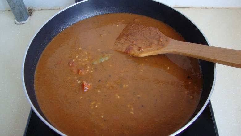 5. 加番茄酱炒香,加西红柿炒软