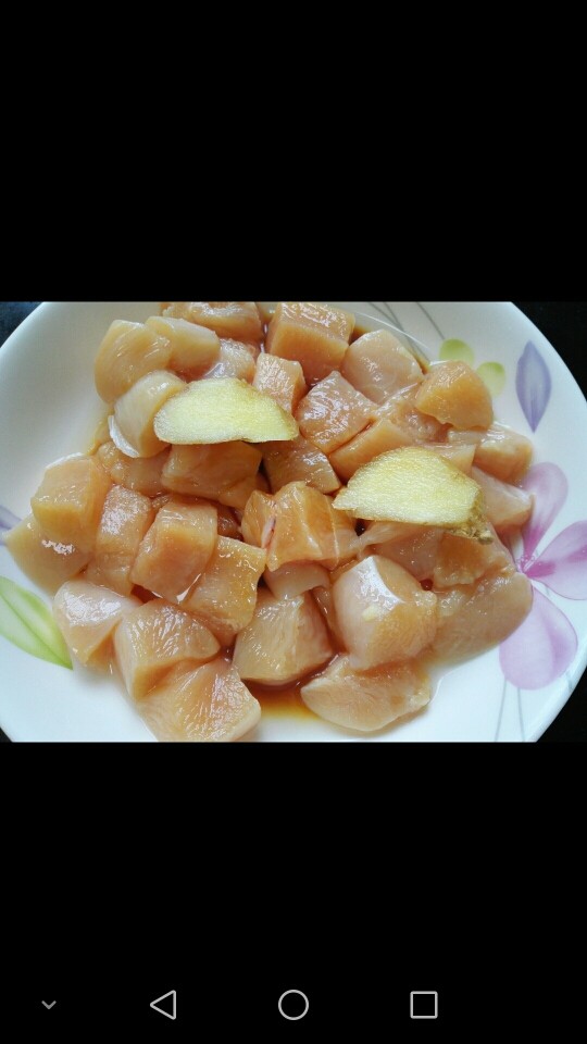 5. 鸡胸肉泡水清洗干净后切成方块状