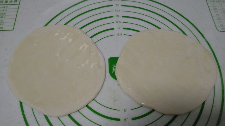 9. 平均分成2份,擀成薄片,均匀涂上油。