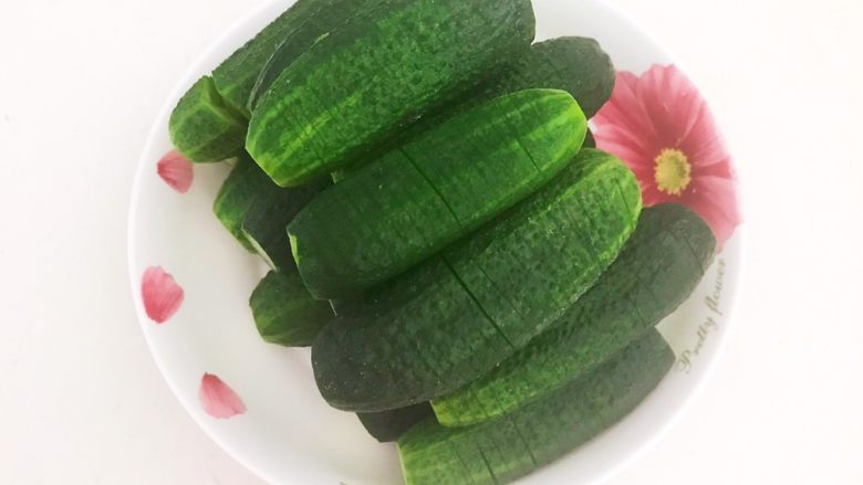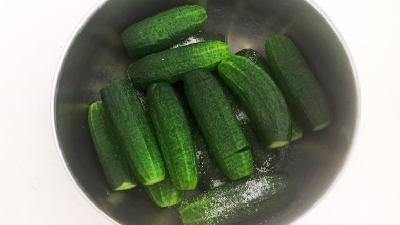 17. 把所有的乳瓜都切好,这样处理过的乳瓜更容易入味