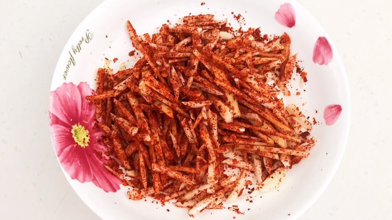 4. 把姜蒜丝放入盘里,加入辣椒粉