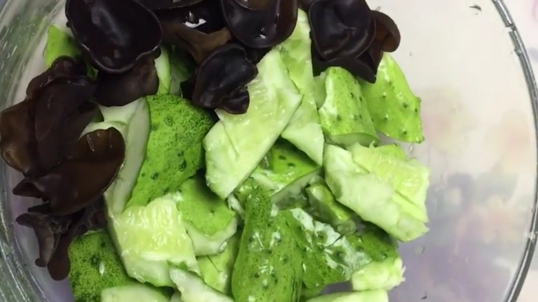 6. 加入陈醋,生抽,盐,鸡精,白糖,香油搅匀倒入黄瓜拌匀即可