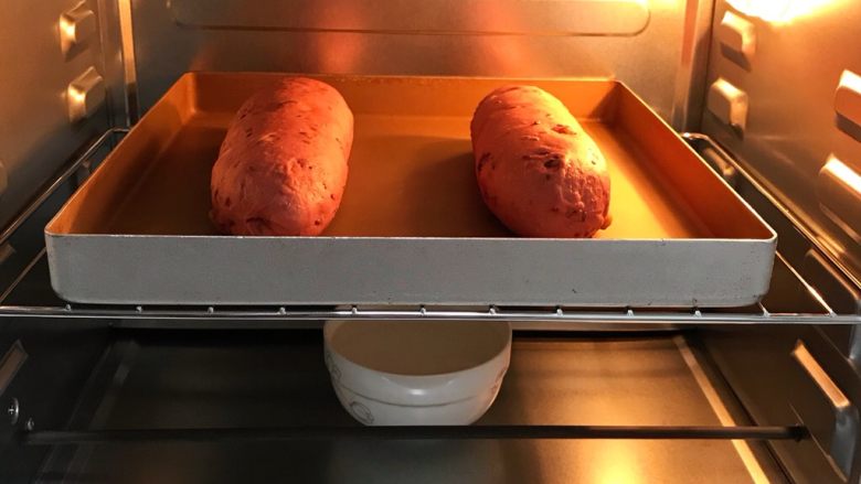 11. 把面团放入烤箱内进行二发,在烤箱里放碗热水保持温度和湿度。