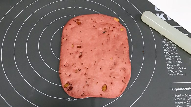 9. 取一份松弛好的面团,用擀面杖擀成长方形。