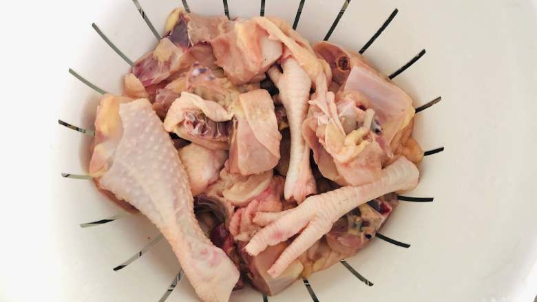 3. 煮熟的鸡肉取出沥水以后放在刚刚预备好的冰水碗里冰镇备用。其实可以准备两碗冰水,换着冰镇效果更好,过了冰水的鸡肉吃起来就是嫩爽的哦!这就是不柴的小窍门!